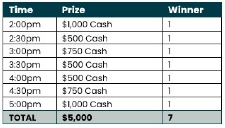 12. The total prize pool for the promotion will be seven (7) prizes, totalling $7,500.